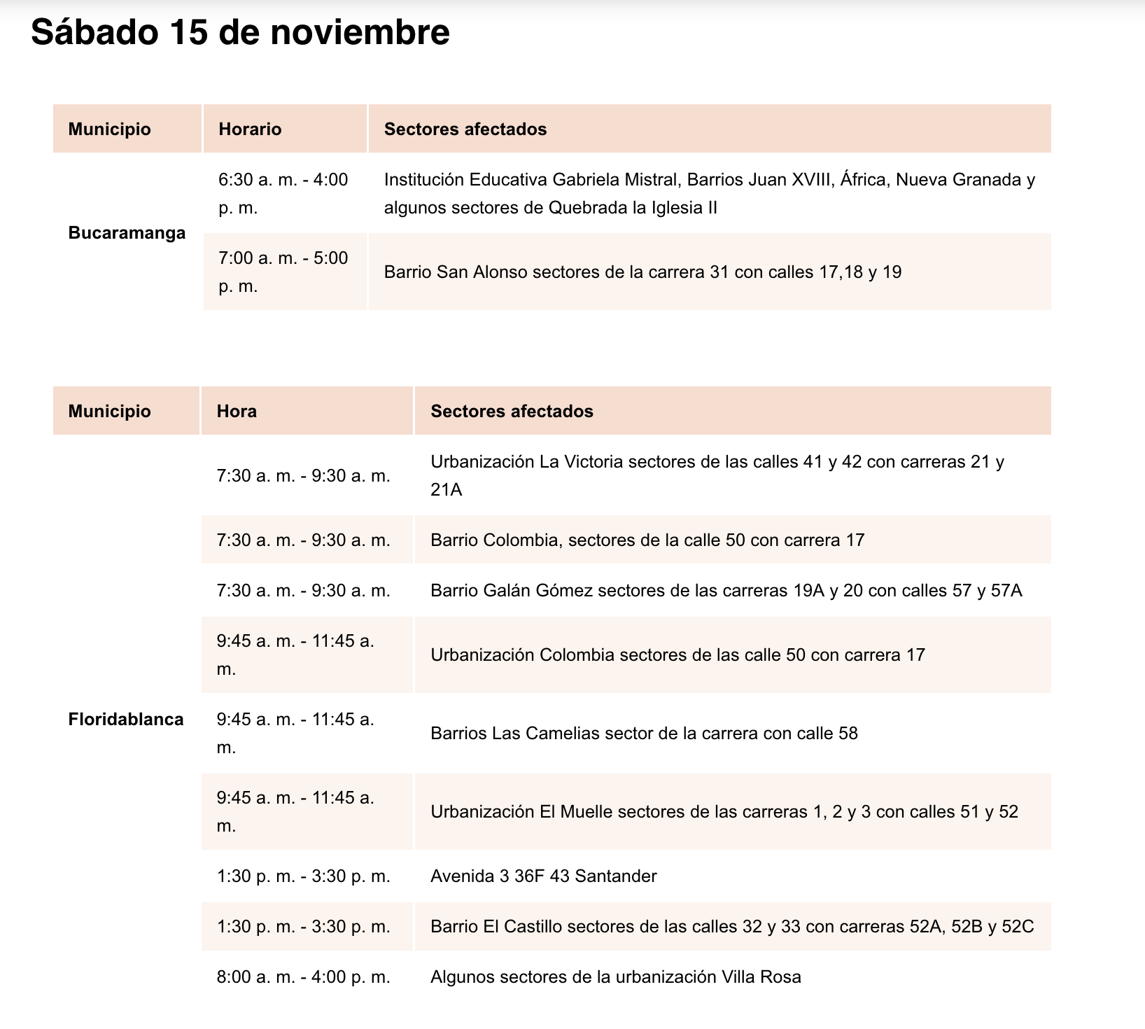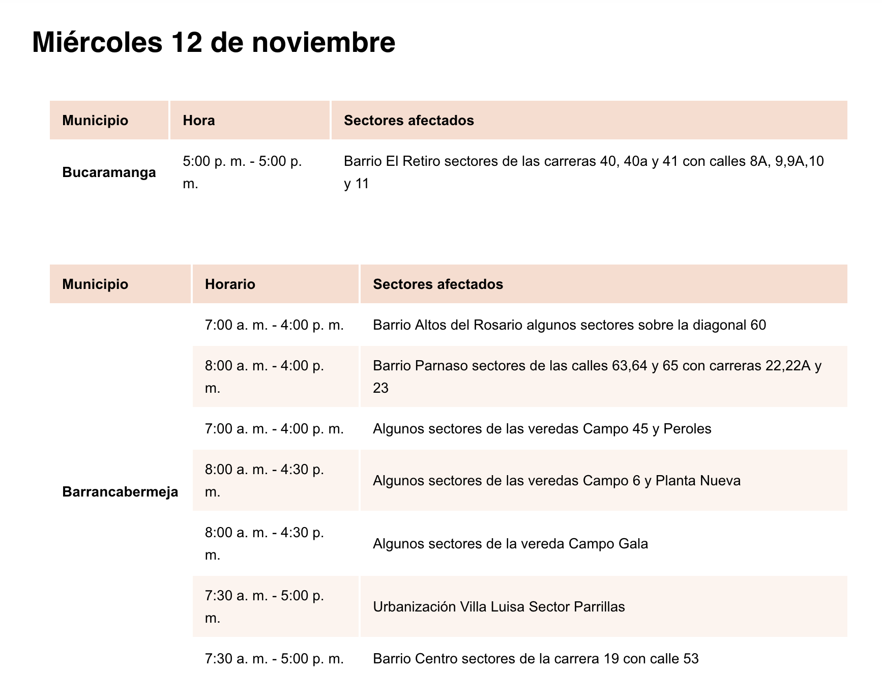 La Empresa de Energía de Santander (ESSA) ha anunciado un programa de cortes de energía que afectará a Bucaramanga, Barrancabermeja y varios municipios del área metropolitana. Estas interrupciones del servicio se llevarán a cabo entre el 11 y el 15 de noviembre, como parte de un plan de mantenimiento necesario para modernizar y optimizar la infraestructura eléctrica de la región. El objetivo principal de estos trabajos es mejorar la confiabilidad y la calidad del suministro energético para los usuarios.